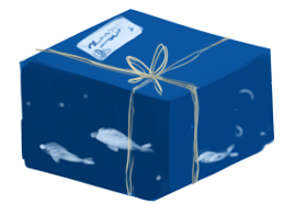 展開的包裝紙像海洋一樣波浪著,有珍珠光澤的白海豚在其中游泳嬉戲,之中的紙盒像條小舟,包裝紙被翻動的聲音是浪濤聲……